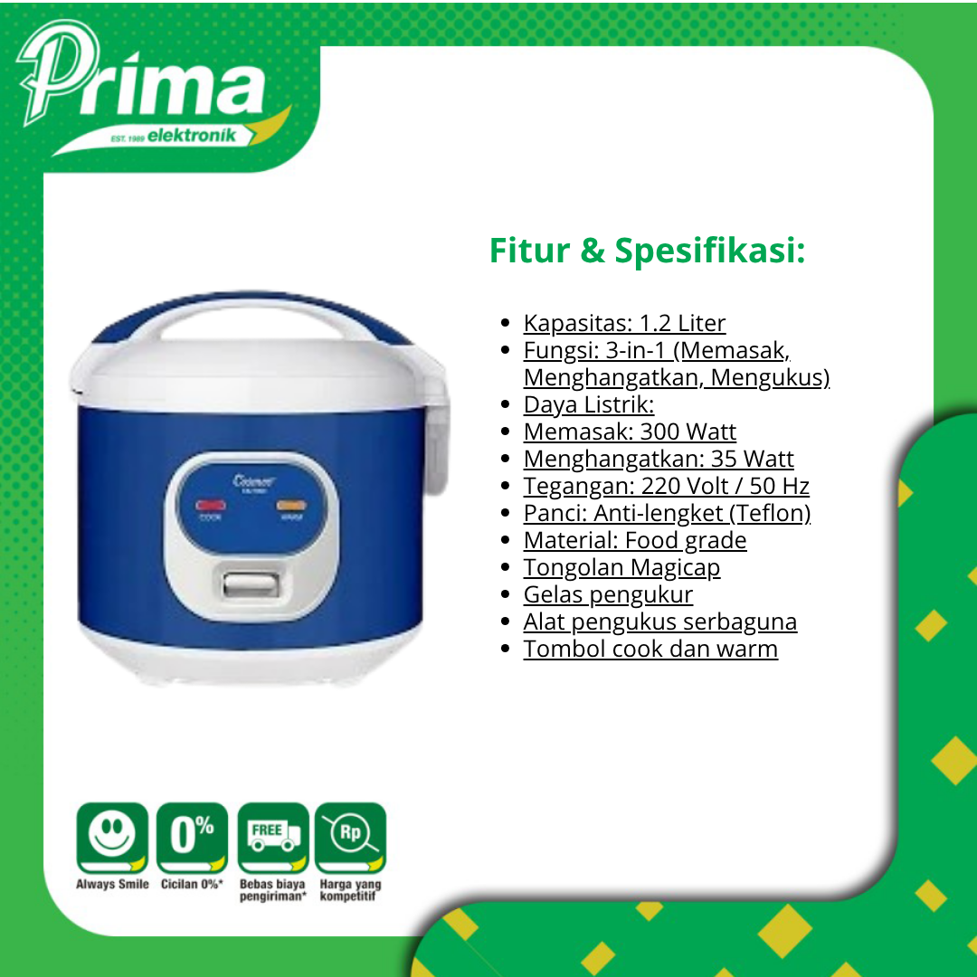 Cosmos Rice Cooker 1.2 Liter CRJ1803